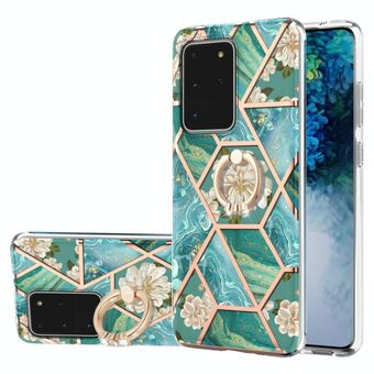 For Samsung Galaxy S20 Ultra Electroplating Splicing Marble Flower Pattern TPU Shockproof Case with Rhinestone Ring Holder(Imperial Crown)