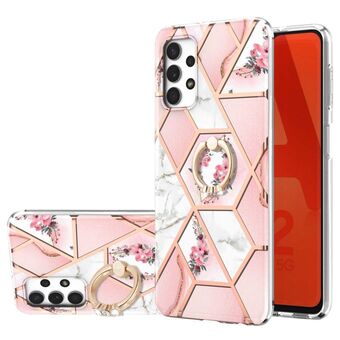 For Samsung Galaxy A32 5G Electroplating Splicing Marble Flower Pattern TPU Shockproof Case with Rhinestone Ring Holder(Pink Flower)
