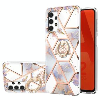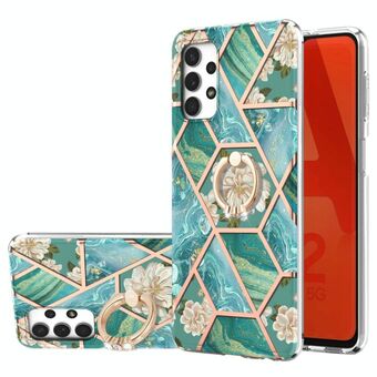 For Samsung Galaxy A32 5G Electroplating Splicing Marble Flower Pattern TPU Shockproof Case with Rhinestone Ring Holder(Blue Flower)