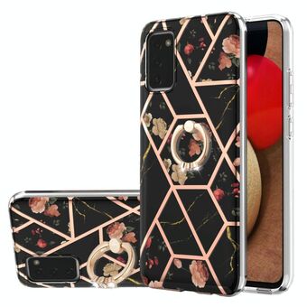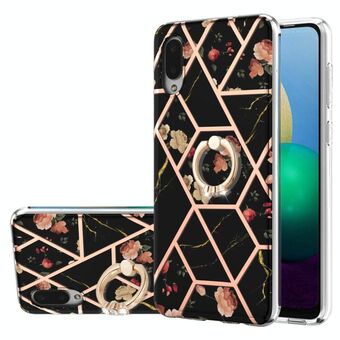 For Samsung Galaxy A02 / M02 Electroplating Splicing Marble Flower Pattern TPU Shockproof Case with Rhinestone Ring Holder(Black Flower)