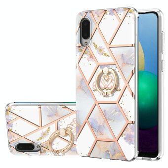 For Samsung Galaxy A02 / M02 Electroplating Splicing Marble Flower Pattern TPU Shockproof Case with Rhinestone Ring Holder(Imperial Crown)