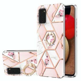 For Samsung Galaxy A02 / M02 Electroplating Splicing Marble Flower Pattern TPU Shockproof Case with Rhinestone Ring Holder(Pink Flower)