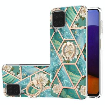 For Samsung Galaxy A12 5G/F12/M12 Electroplating Splicing Marble Flower Pattern TPU Shockproof Case with Rhinestone Ring Holder(Blue Flower)