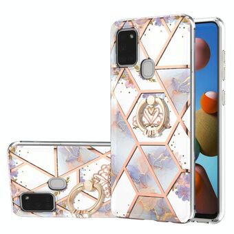 For Samsung Galaxy A21s Electroplating Splicing Marble Flower Pattern TPU Shockproof Case with Rhinestone Ring Holder(Imperial Crown)