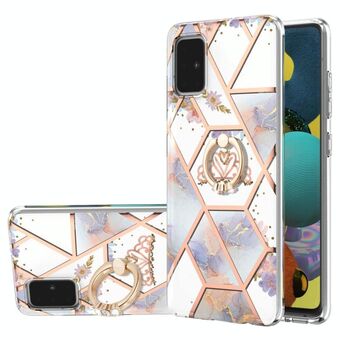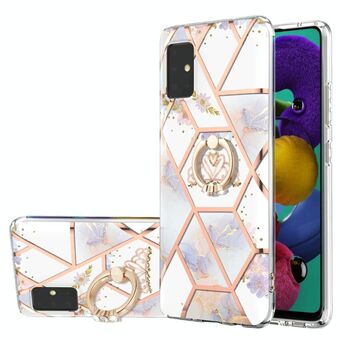 For Samsung Galaxy A51 5G Electroplating Splicing Marble Flower Pattern TPU Shockproof Case with Rhinestone Ring Holder(Imperial Crown)