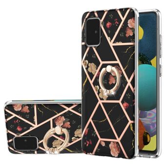 For Samsung Galaxy A51 4G Electroplating Splicing Marble Flower Pattern TPU Shockproof Case with Rhinestone Ring Holder(Black Flower)