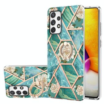 For Samsung Galaxy A32 5G Electroplating Splicing Marble Flower Pattern TPU Shockproof Case with Rhinestone Ring Holder(Imperial Crown)