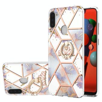 For Samsung Galaxy A01 Core Electroplating Splicing Marble Flower Pattern TPU Shockproof Case with Rhinestone Ring Holder(Imperial Crown)