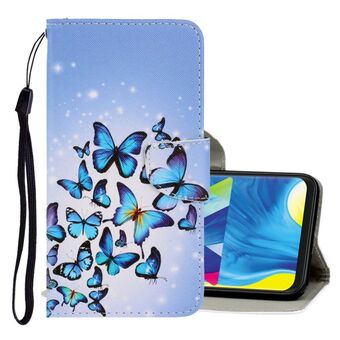For Samsung Galaxy A21s Electroplating Splicing Marble Flower Pattern TPU Shockproof Case with Rhinestone Ring Holder(Blue Flower)