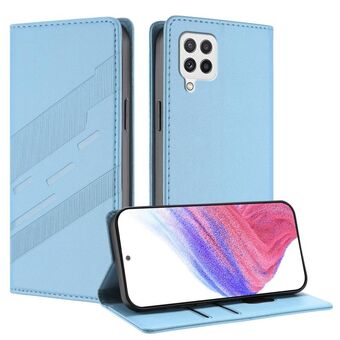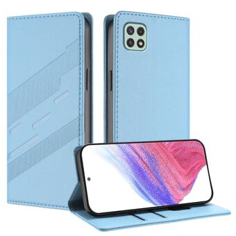 For Samsung Galaxy A22 5G / F42 5G Embossed Multi-functional Wallet Retro Leather Phone Case(Light Blue)