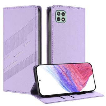 For Samsung Galaxy A22 5G / F42 5G Embossed Multi-functional Wallet Retro Leather Phone Case(Light Purple)
