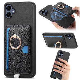 For Samsung Galaxy A15 Retro Cross Leather Ring Side Insert Card Bag MagSafe Phone Case(Black)