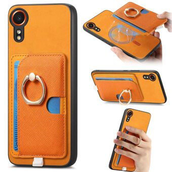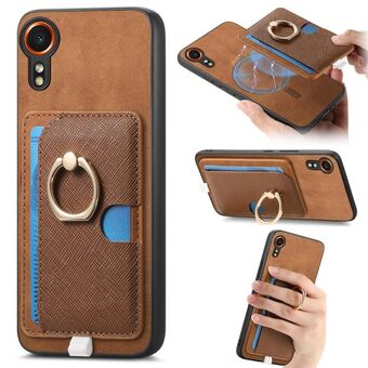 For Samsung Galaxy XCover 7 Retro Cross Leather Ring Side Insert Card Bag MagSafe Phone Case(Brown)