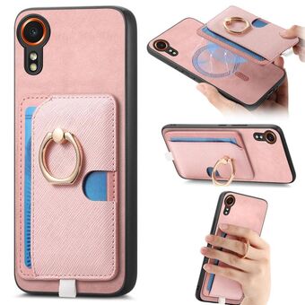 For Samsung Galaxy XCover 7 Retro Cross Leather Ring Side Insert Card Bag MagSafe Phone Case(Pink)