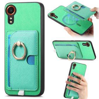 For Samsung Galaxy XCover 7 Retro Cross Leather Ring Side Insert Card Bag MagSafe Phone Case(Green)