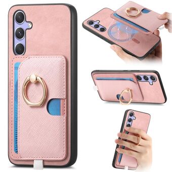 For Samsung Galaxy A35 5G Retro Cross Leather Ring Side Insert Card Bag MagSafe Phone Case(Pink)