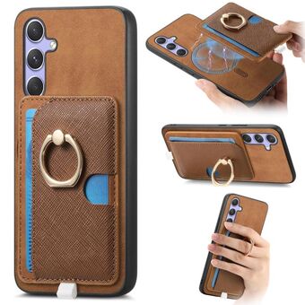 For Samsung Galaxy A35 5G Retro Cross Leather Ring Side Insert Card Bag MagSafe Phone Case(Brown)