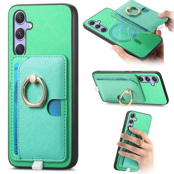 For Samsung Galaxy A35 5G Retro Cross Leather Ring Side Insert Card Bag MagSafe Phone Case(Green)