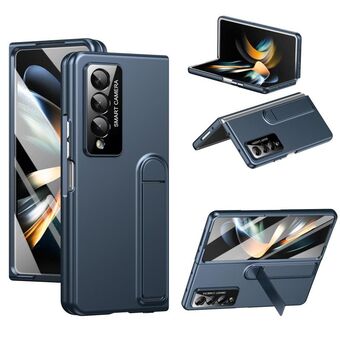 For Samsung Galaxy A15 Retro Cross Leather Ring Side Insert Card Bag MagSafe Phone Case(Blue)