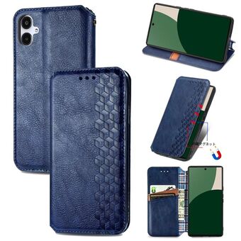 For Samsung Galaxy A25 5G Cubic Grid Pressed Magnetic Leather Phone Case(Blue)