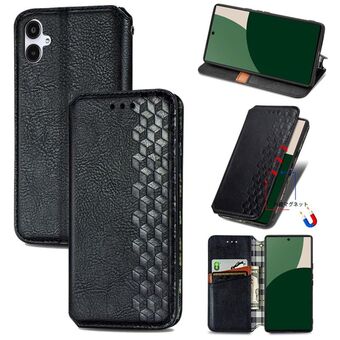 For Samsung Galaxy A25 5G Cubic Grid Pressed Magnetic Leather Phone Case(Black)