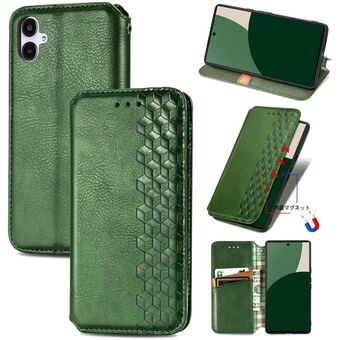 For Samsung Galaxy A25 5G Cubic Grid Pressed Magnetic Leather Phone Case(Green)