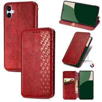For Samsung Galaxy A25 5G Cubic Grid Pressed Magnetic Leather Phone Case(Red)