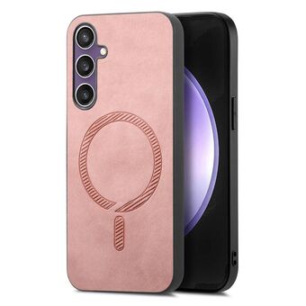 For Samsung Galaxy S24 FE 5G Solid Color Retro Magsafe PU Back Cover Phone Case(Pink)