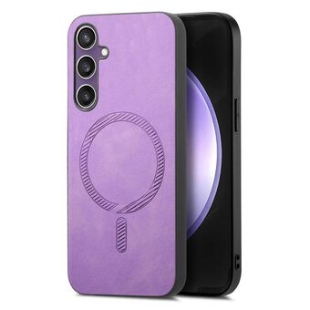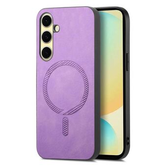 For Samsung Galaxy S24 FE 5G Solid Color Retro Magsafe PU Back Cover Phone Case(Purple)