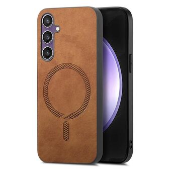 For Samsung Galaxy S24 FE 5G Solid Color Retro Magsafe PU Back Cover Phone Case(Brown)