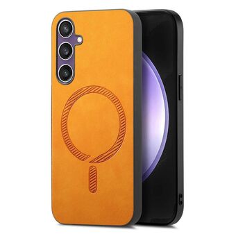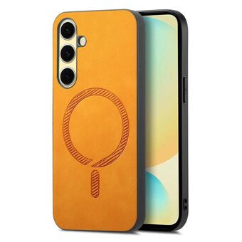 For Samsung Galaxy S24 FE 5G Solid Color Retro Magsafe PU Back Cover Phone Case(Yellow)