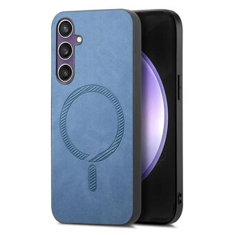 For Samsung Galaxy S24 FE 5G Solid Color Retro Magsafe PU Back Cover Phone Case(Blue)