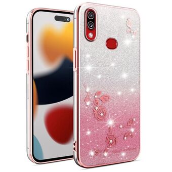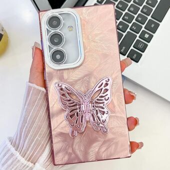 For Samsung Galaxy A55 5G Plating Glitter Texture Butterfly Holder TPU Phone Case with Lens Film(Pink Feathers)