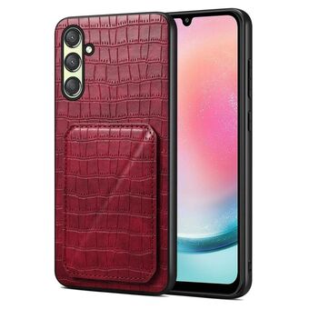 For Samsung Galaxy A24 4G Denior Imitation Crocodile Leather Back Phone Case with Holder(Brown) (Denior)