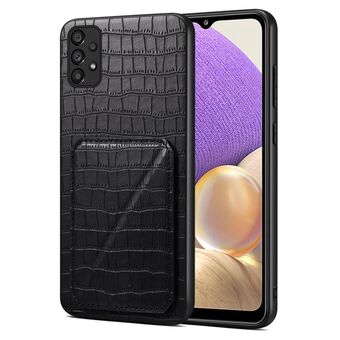 For Samsung Galaxy A32 5G Denior Imitation Crocodile Leather Back Phone Case with Holder(Black) (Denior)