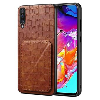 For Samsung Galaxy A70 Denior Imitation Crocodile Leather Back Phone Case with Holder(Brown) (Denior)