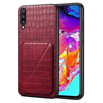 For Samsung Galaxy A20s Denior Imitation Crocodile Leather Back Phone Case with Holder(Rose Red) (Denior)
