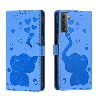For Samsung Galaxy S21 FE 5G Cartoon Elephant Embossed Leather Phone Case(Blue)