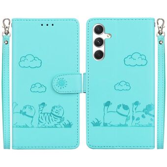 For Samsung Galaxy F06 5G / M06 5G Embossed Kitten Phone Leather Case with Lanyard(Mint Green)