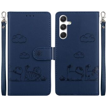 For Samsung Galaxy F06 5G / M06 5G Embossed Kitten Phone Leather Case with Lanyard(Blue)