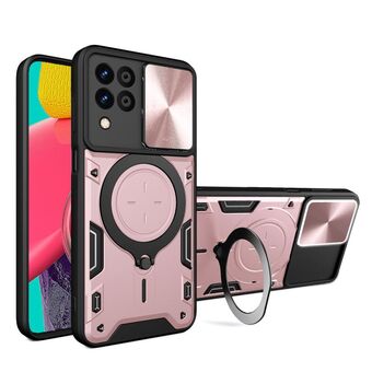 For Samsung Galaxy M33 5G CD Texture Sliding Camshield Magnetic Holder Phone Case(Pink)