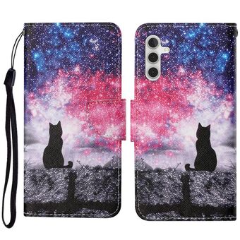 For Samsung Galaxy A34 Colored Drawing Pattern Leather Phone Case(Star Sky Cat)