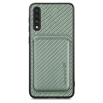 For Samsung Galaxy A50 Carbon Fiber Leather Card Magsafe Case(Green)