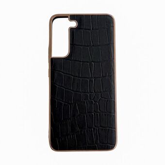 For Samsung Galaxy S21 FE 5G Crocodile Texture Genuine Leather Electroplating Phone Case(Black)