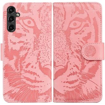 For Samsung Galaxy A14 5G Tiger Embossing Pattern Horizontal Flip Leather Phone Case(Pink)