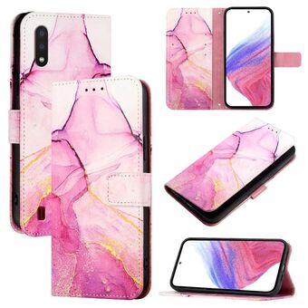 For Samsung Galaxy A01 EU PT003 Marble Pattern Flip Leather Phone Case(Pink Purple Gold)
