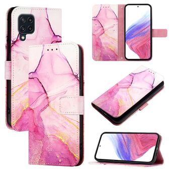 For Samsung Galaxy M32 4G Global / M22 PT003 Marble Pattern Flip Leather Phone Case(Pink Purple Gold)