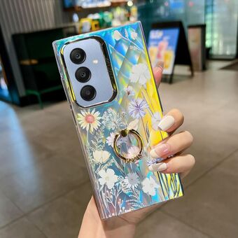 For Samsung Galaxy A25 5G Electroplating Laser Flower Ring Holder TPU Phone Case(Flower AH1)