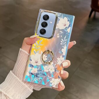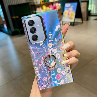 For Samsung Galaxy A25 5G Electroplating Laser Flower Ring Holder TPU Phone Case(Flower AH6)