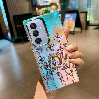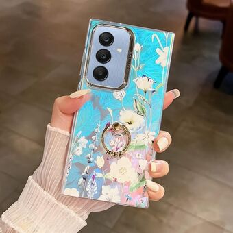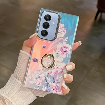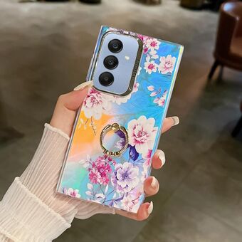 For Samsung Galaxy A25 5G Electroplating Laser Flower Ring Holder TPU Phone Case(Drawn Flowers AH3)